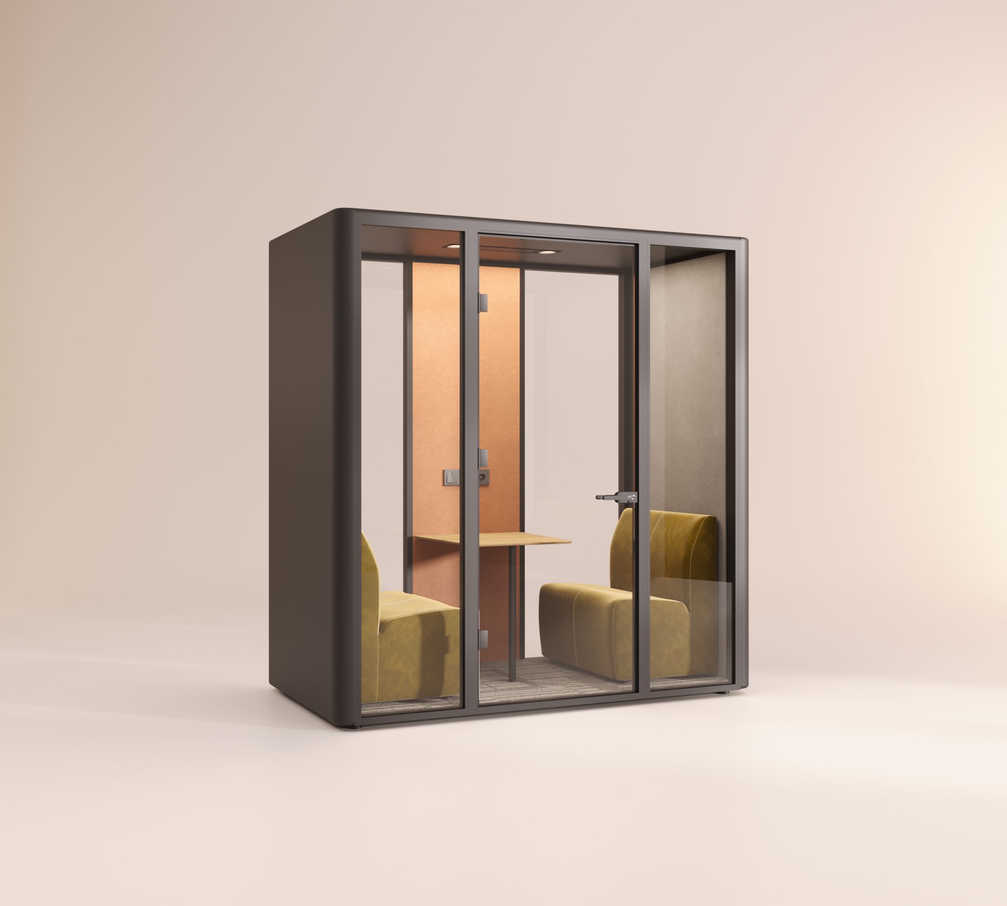 Ruum Meet, küçük toplantılar, beyin fırtınası oturumları, mahremiyet ve odaklanma gerektiren toplantılar için ideal çok işlevli bir alandır. Konferans odası sistemlerini kullanarak, gürültü ve kirliliği azaltmaya yardımcı olan ses geçirmez bir ortam yaratırken, geniş ve güvenli bir alan yaratır rahat. Ruumpod, insanların rahatlamak, odaklanmak ve biraz “kendime zaman ayırmanın” tadını çıkarmak için bir anlığına yalnız kalabilecekleri bir alandır. Ayrıca daha özel bir deneyim için değiştirilebilir cam seçeneğiyle birlikte gelir.